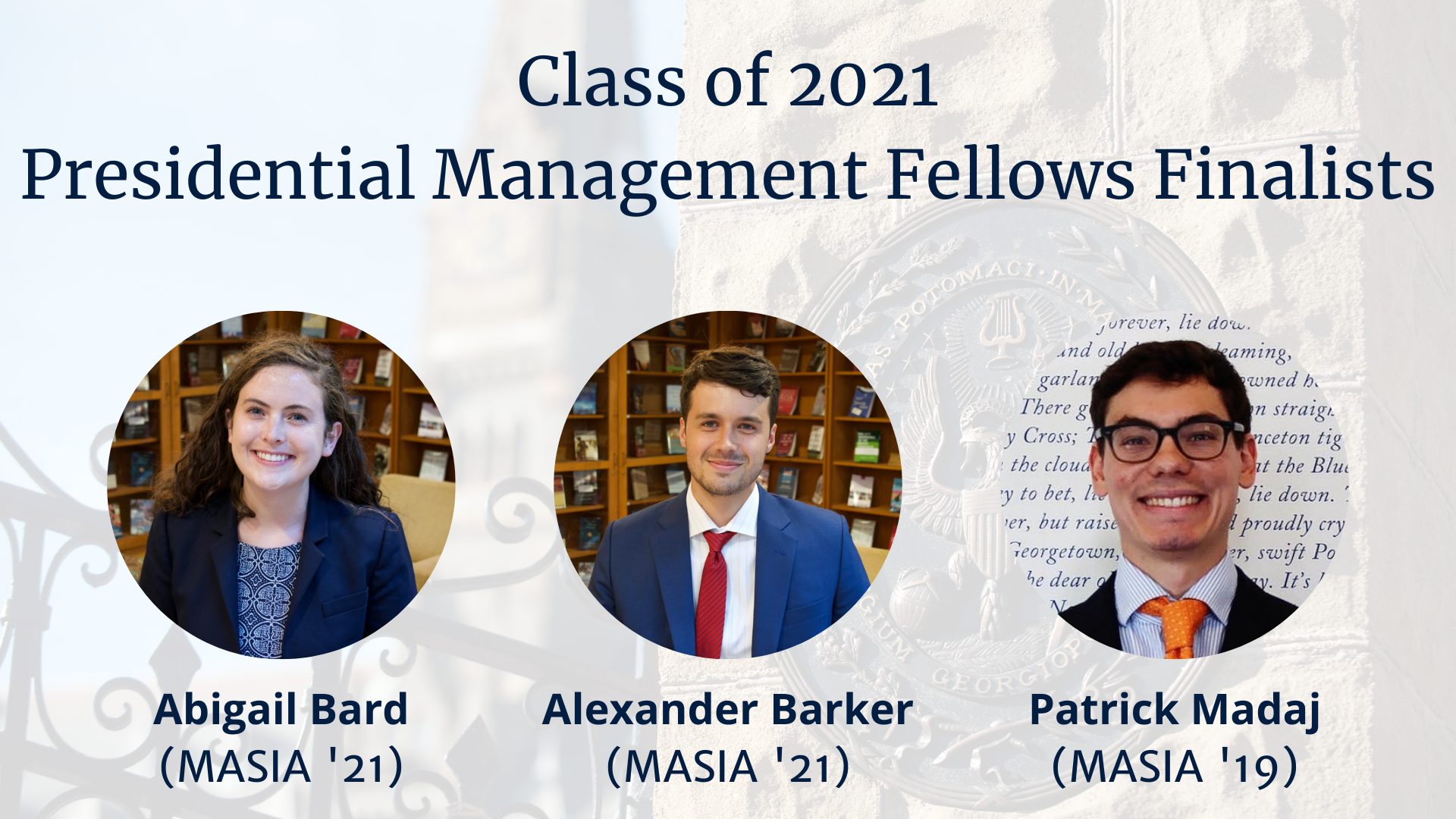 Three MASIA Students Named PMF Class of 2021 Finalists